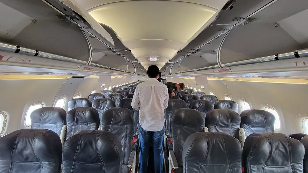 Este Airbus A319 está configurado para 120 pasajeros con 12 asientos en Business y 108 en Económica con su tradicional look de cuero, pero sin pantallas individuales de entretenimiento.