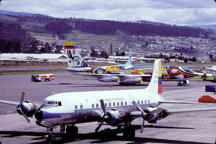 A medida que las ambiciones de TAME crecían, también lo hacía su necesidad de aviones con mayor alcance y capacidad. Entre 1963 y 1975, la aerolínea adquirió estratégicamente siete Douglas DC-6B, marcando un salto significativo en sus capacidades operacionales. Estos aviones de hélice de cuatro motores, con sus cabinas presurizadas y un impresionante alcance de 4,000 millas, fueron un punto de inflexión para TAME. Algunos de estos DC-6B fueron antiguos aviones de United Airlines, aportando un toque de historia de la aviación internacional a los cielos de Ecuador.