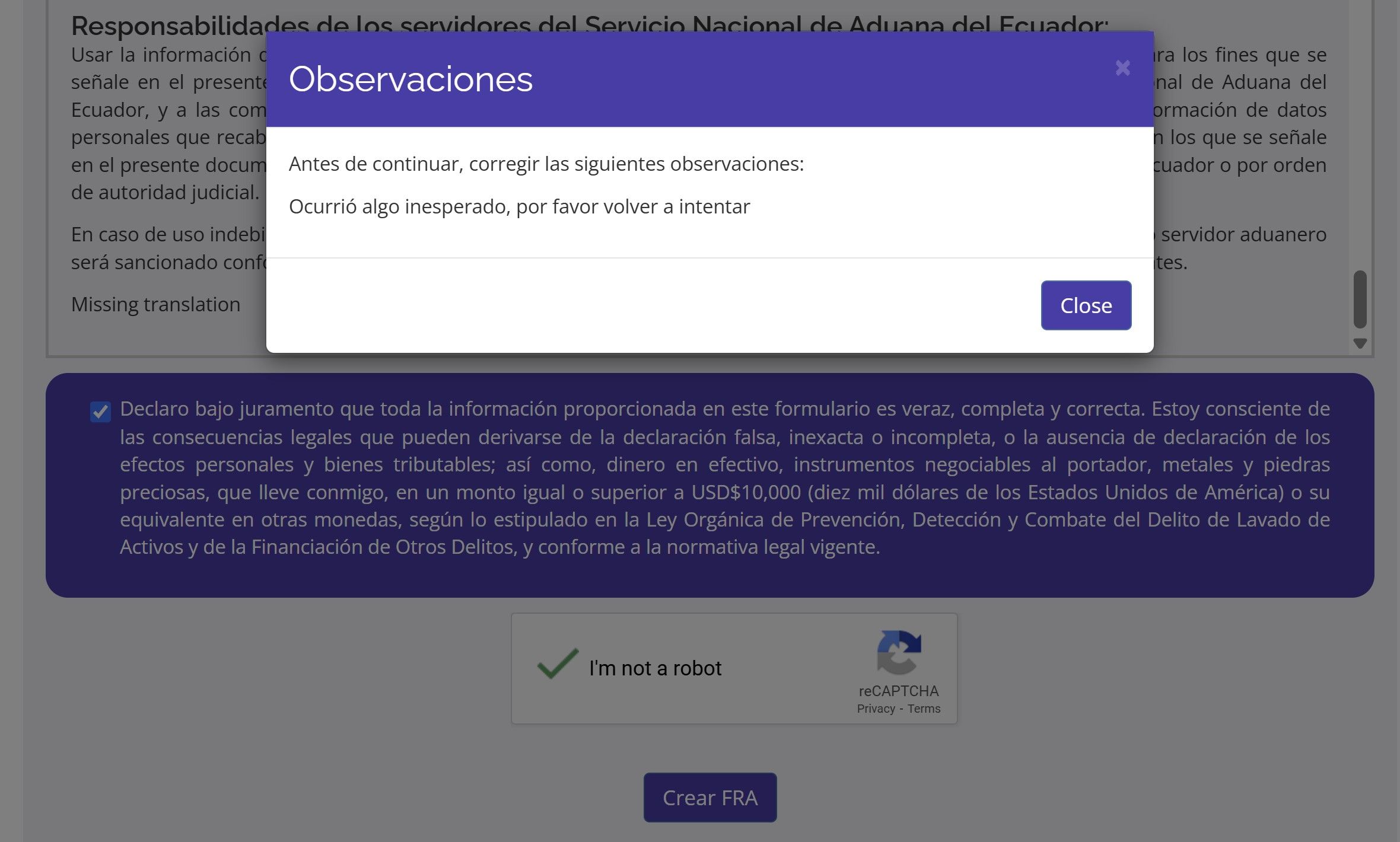 Listo eso es todo, toma cerca de 8 minutos y depende de que tengas todos los datos. Vale indicar que cuando intente crear el FRA, salió error y no pude terminar el proceso y si quieres corregir, te toca volver a llenar todo, pésima experiencia como usuario y ni hablar de la horrible traducción al inglés de este formulario.