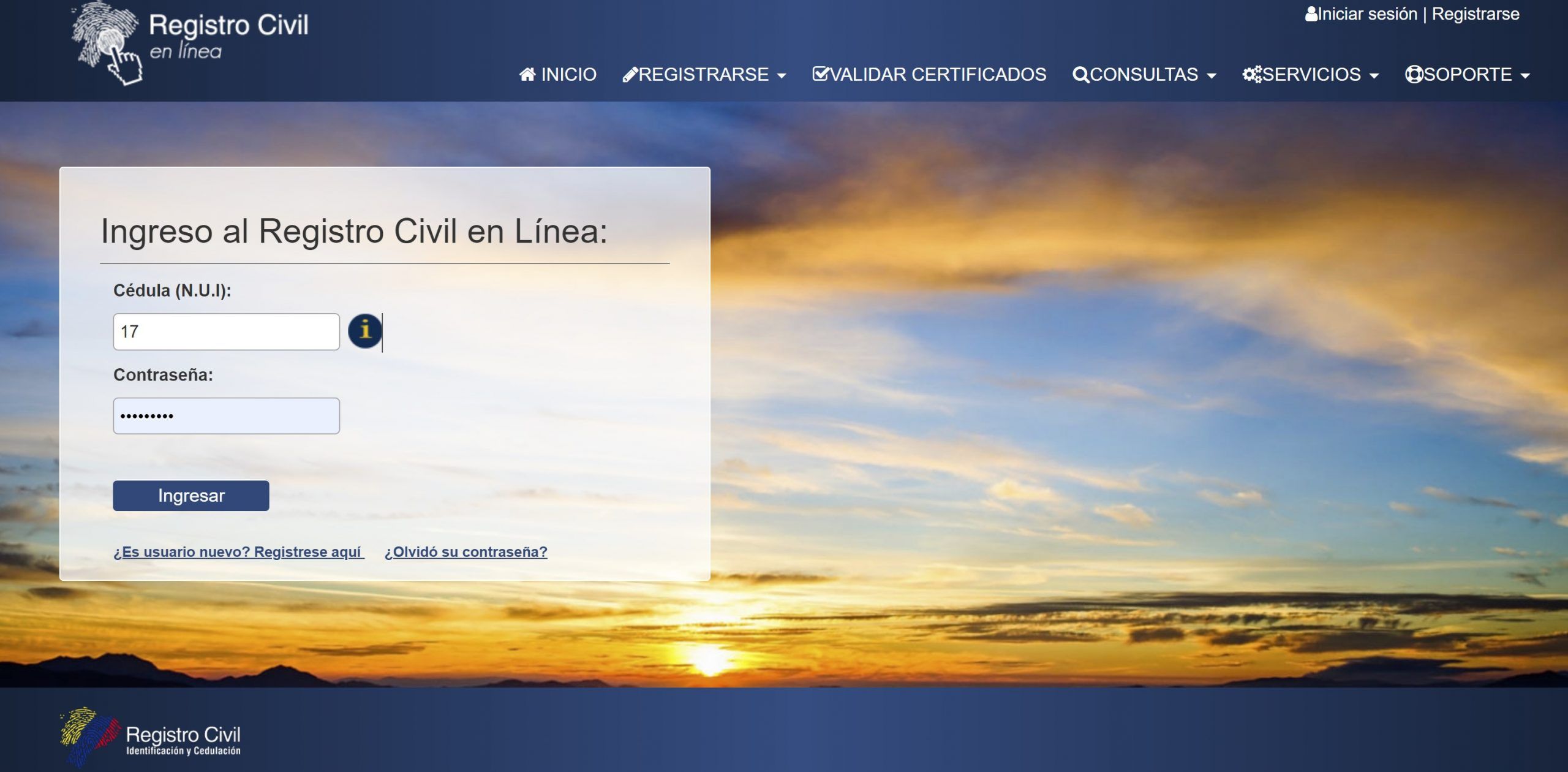 Wir werden eintreten www.registrocivil.gob.ec und wir werden nach dem Banner suchenñgeflügelt nach unten: