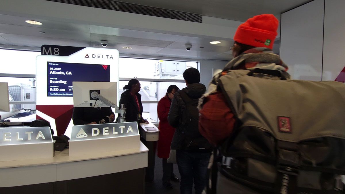 Sie müssen zu diesem Zeitpunkt auf dem Informationsbildschirm oder in der Delta-App nachsehen, von welchem Terminal Ihr Flug abfliegt, denn in manchen Fällen könnte der Terminal Ihres internationalen Fluges mit dem Ihres Inlandsfluges zusammenfallen, Es ist sehr variabel.