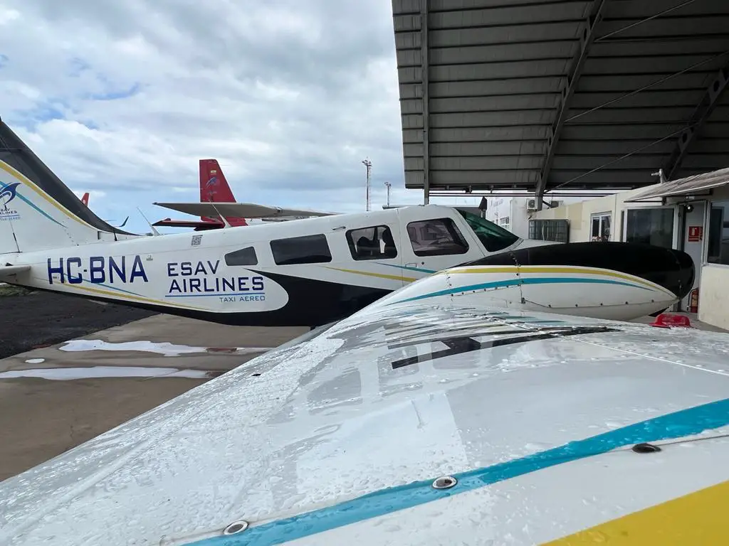 mit zwei Flugzeugen, ESAV Airlines bereitet die Aufnahme seines Taxidienstes nach voréGefangene auf den Inseln, nachdem sie vom Flughafen Salinas dorthin verlegt wurden San Cristóbal seine ersten Einsatzteamsón.