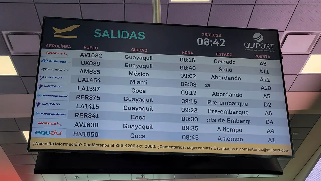 Nachdem ich das gesagt habe, Ich wurde von der Fluggesellschaft eingeladenínea, Teil des Erstfluges zu sein, also seitdem 7:30 Bin ich anwesend?é drin Flughafen Quito in der Kontrollzone A, Wo liegt der Flughafen?íSchlange, um meine Bordkarte zu erhalten. Hierí Es ist wichtig anzugeben, dass das Aerosolínea verfügt über ein Web-Check-in-System ohne Kosten für die AuswahlóAnzahl der Sitzplätze, aus denen sie bestehen können 24 Stunden vor dem Flug mit Ihrem cóIch sage Reserve.