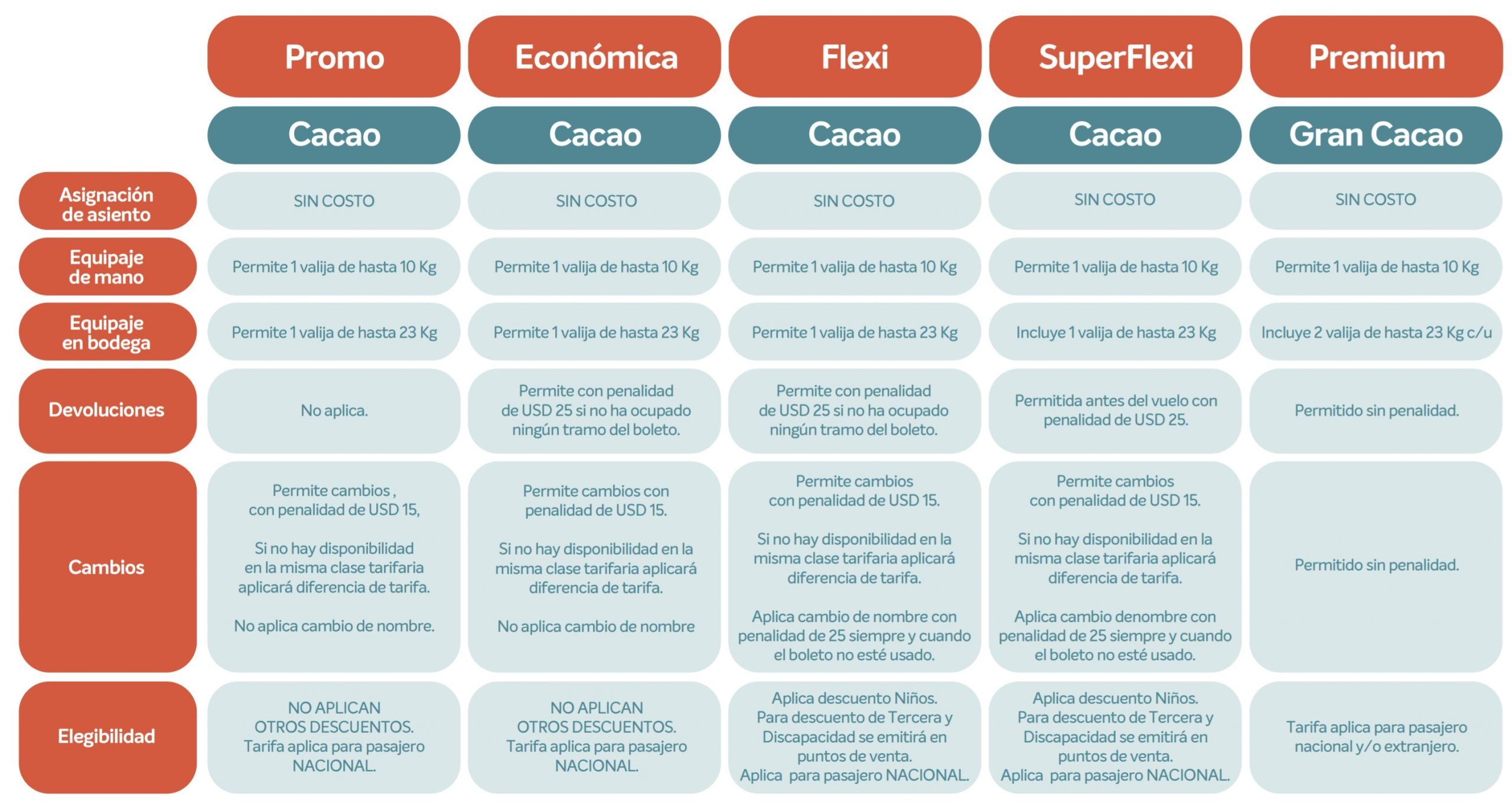The rest of the differences areá where each categoryíto allowá or no returns, changes with or without penalty and additional discounts for neitherños and seniors, so the recommendationóto beá in which they choose the one that más adapts to your travel needs.