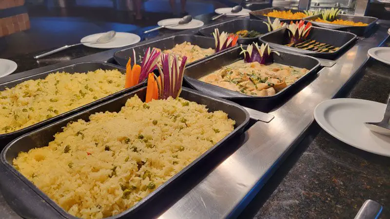 A l'heure du déjeuner, le restaurant principal propose une grande variété de plats, comme les soupes, salades, riz, protégerínas et desserts. La nourriture est variée et il y a des options de plats locaux et internationaux..