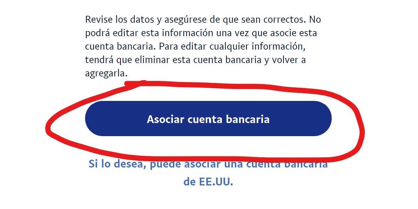 - Finalizamos esta parte dando clic en el botón azul de asociar cuenta bancaria.
