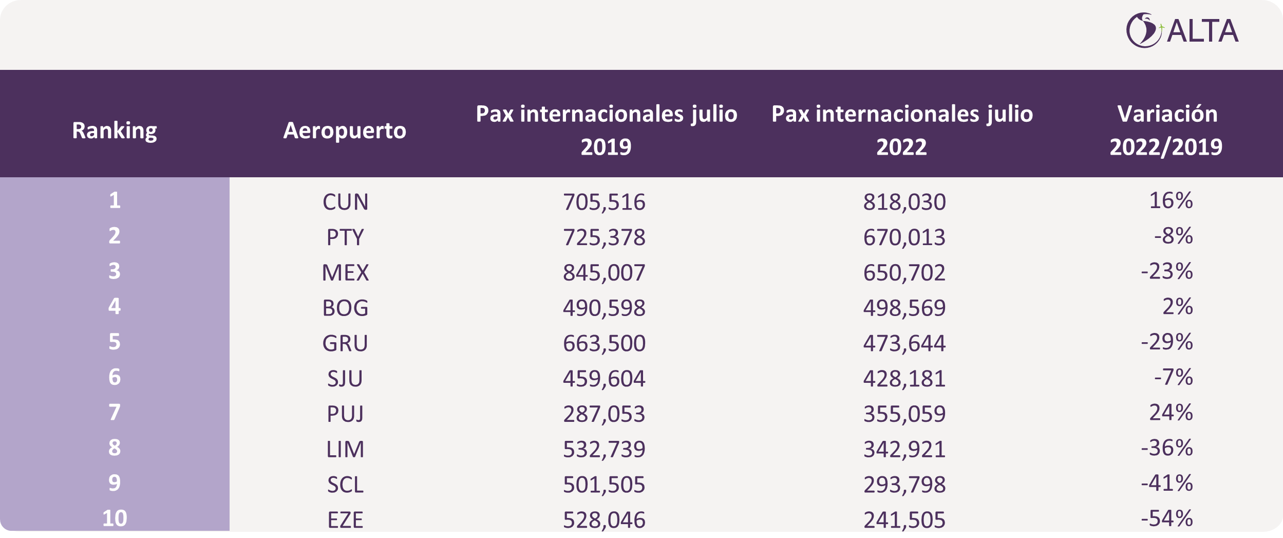 El Reporte del TráResto ALTA lo dimostra nel mese di luglio 2022 sono stati trasportati a 29,7 millones de pasajeros en la regióno e, nel cumulato gennaio-luglio, 183,9 milioni di passeggeri, che rappresenta a 13% meno dei loro livelli 2019.