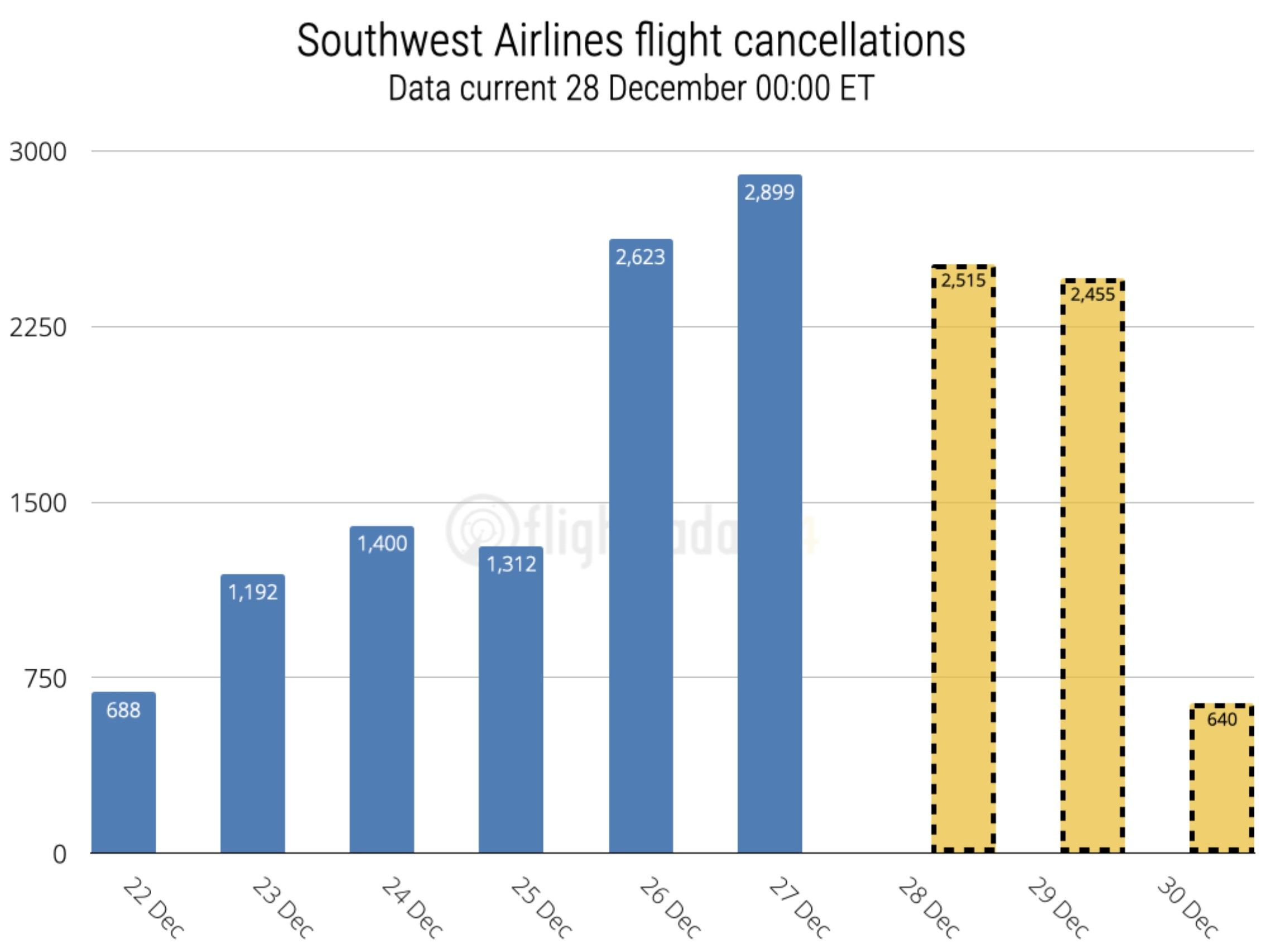 Compagnie aeree del Sud-ovest ha fatto qualcosa di storicoóstecca, ha cancellato migliaia di voli in un breve periodo di tempo, per cause meteorologicheólogica e operazioni proprie, más rispetto a qualsiasi altro aerosolíne nel Stati Uniti d'America.
