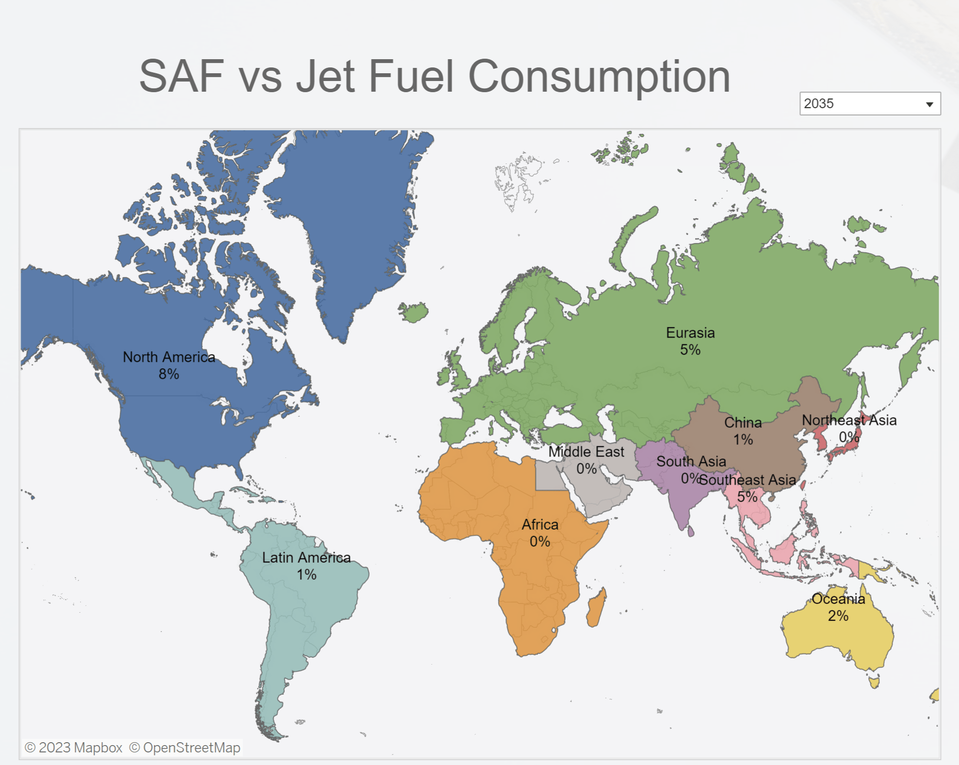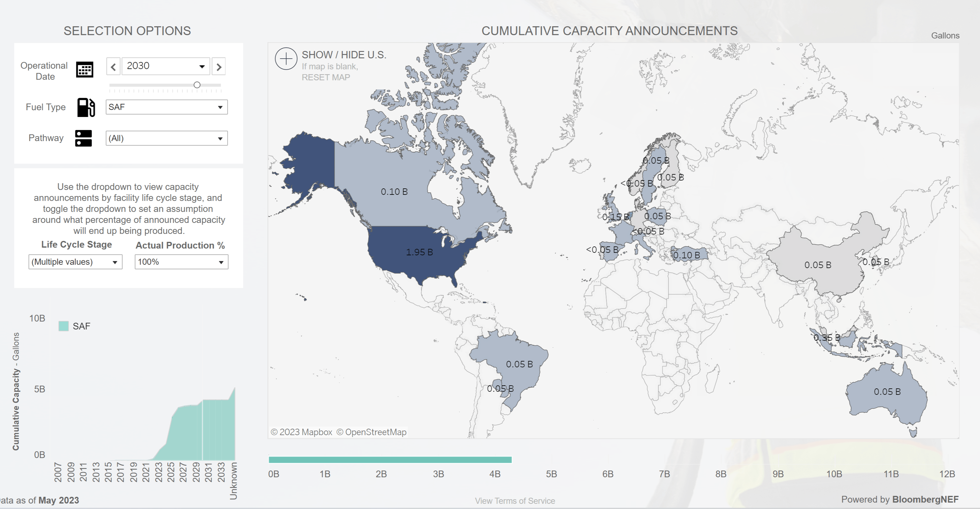 Con questa piattaforma, los interesados pueden ver cómo cada país ha avanzado en la conversación, toma de decisiones y finalmente cuánto SAF o cuándo la producción iniziareá. Quií Un esempio:
