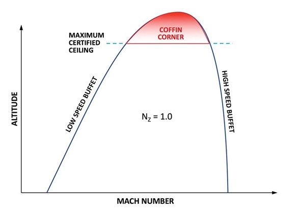 Alejandro Torres, un giovane copilota Boeing 727 en pleno crucero se voltea y me pregunta sobre el Coffin Corner, yo empiezo por aclararme la voz (para empezar la conferencia) il técnico de vuelo, Hernán Buitrago, afina el oído y se apresta a ver dónde me equivoco y el capitán Ricardo Barragán me mira de reojo (sabe que voy a contradecir todo) y lo comprueba cuando le digo al copiloto: ¿tú sabes que el avión no entra en pérdida por baja velocidad y que por el contrario si lo puede hacer por alta?