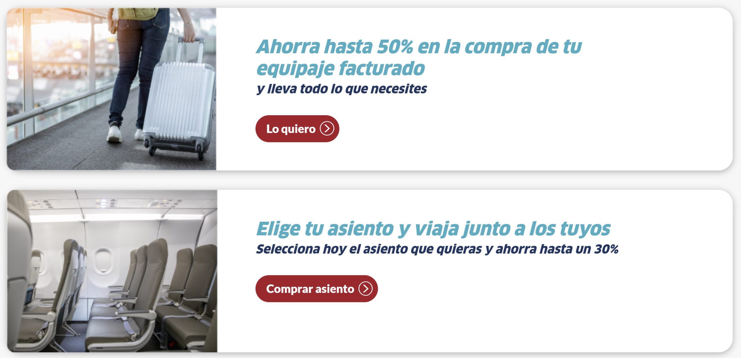 Suggerimento professionale: se non hanno acquistato bagaglio a mano o da stiva, nella sezioneón di «Gestisci il tuo viaggio» Potevoán farlo con a 50% spento, comeí lascia che ne approfittino, all'aeroporto è más caro.