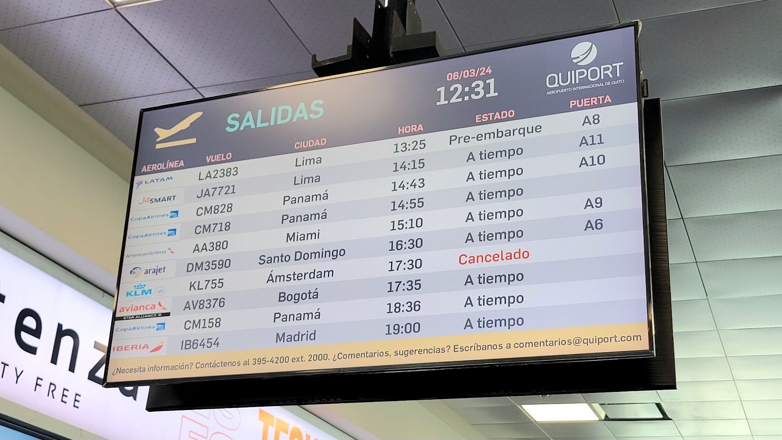 Grazie mille per la tua segnalazione, abbastanza utile e specifico. Volevamo davvero sapere qualcosa in più su questa compagnia aerea dato che non hanno un ufficio fisico a Guayaquil e questo mi ha reso un po' diffidente.. Informazioni sul servizio clienti, Sai se hanno una linea in Ecuador dove possiamo contattare un operatore di questa compagnia aerea??