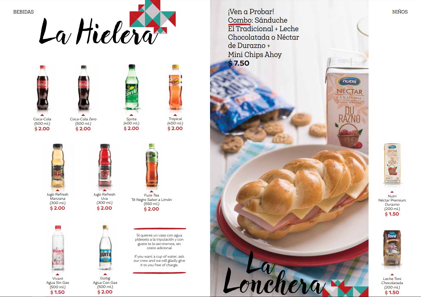 La Hielera é a seçãoón de bebidas e Coca Cola, sprite, Sucos refrescantes ou um Guitig custam tudo $2.00. Espagueteén Suco Nutri e achocolatado Toni em um carrinhoón para niños e um penteó com um sáa fruta, másuco de pêssego e alguns biscoitos para $7.50. Compare os preços de algo assimí em um caféínas salas de espera ;). A venda de álcool seráá máestá à frente, para a segunda versãoón da revista Mercado LATAM no Equador até que as licenças de venda sejam cumpridas.