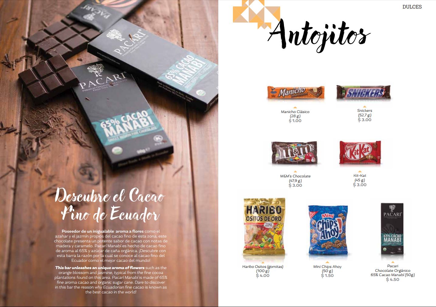 Para quem também ama doceséNão há opções de $1.00 por um manico, Chips Ahoy por $1.50 o de $3 Snickers direto, M&EM, haribos, KitKat ou el másim, querido, uma mesa de chocolate Pacari orgáNico 65% cacau por $4.50. Preços perto de um supermercado.