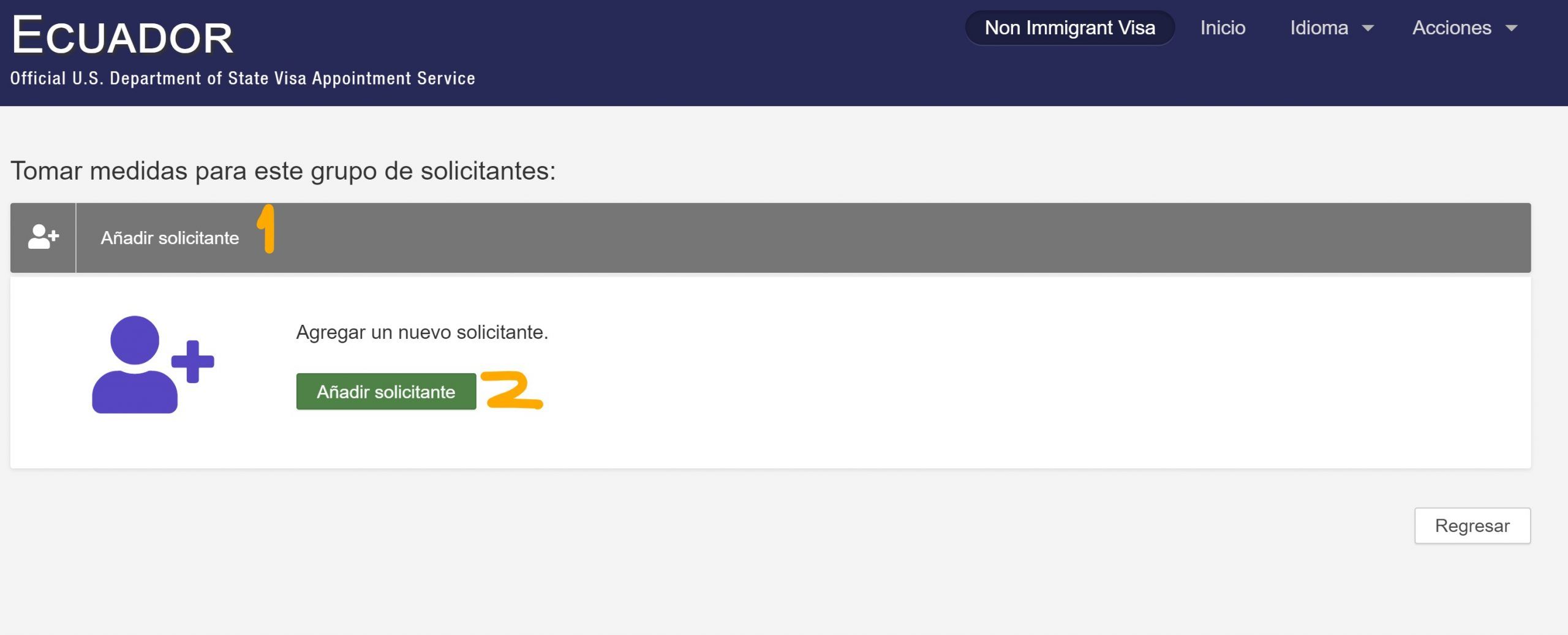 Depois de preencher o formulário DS-160, você poderá adicioná-los em um único processo na Etapa 6.