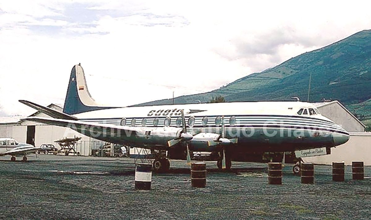 Quarta-feira 20 Outubro 1971 Visconde Vickers 785D c/n 329 HC-AVP, aeroporto de partida Mariscal Sucre Quito (SEGUINDO) aeroporto de destino Mariscal La Mar Cuenca (SECU).