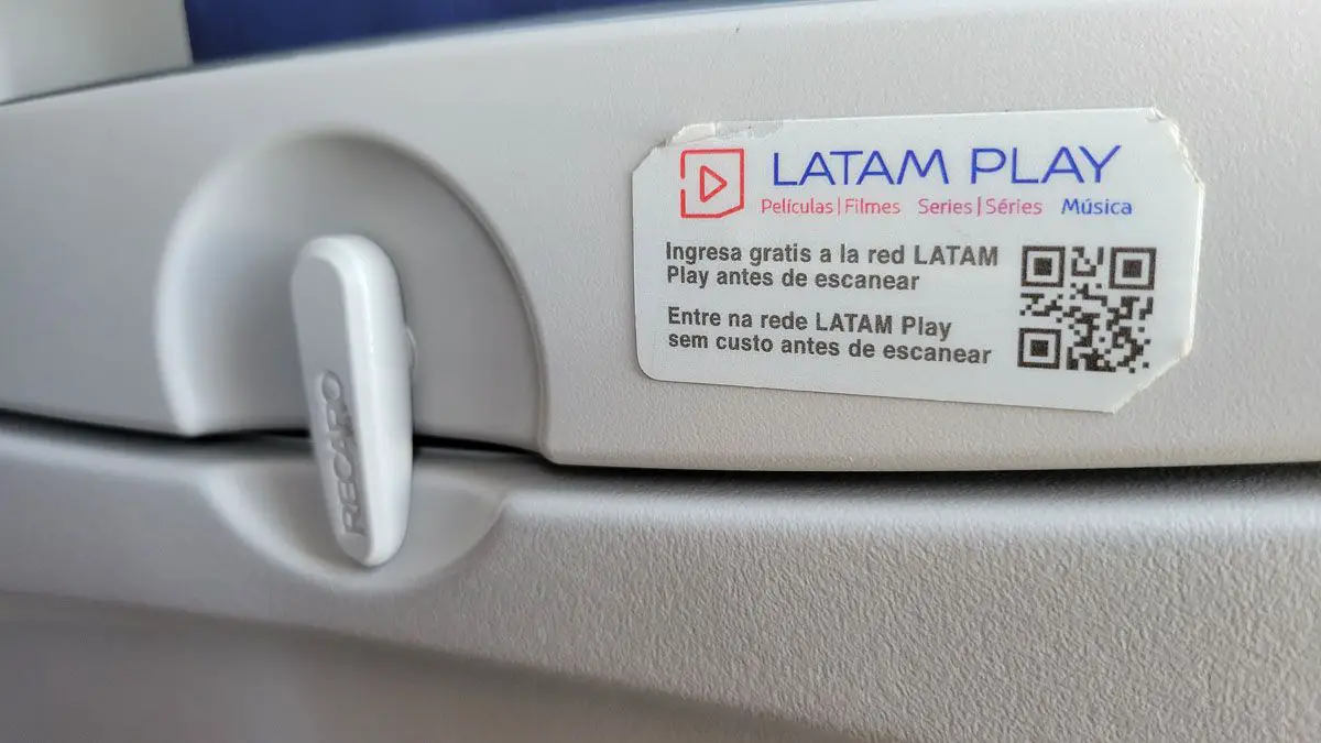 Agora vamos passar para o entretenimento. Latam não oferece Más em sua frota A320 individual ou telas superiores (IFE), então tudo se voltou para o sistema LATAM Play, que oferece uma ampla gama de música, poríO que é e série. Para conectar, você só precisa adicionar a rede local Wi -Fi do Avión e escaneie o cóEu digo QR encontrado em cada assento.