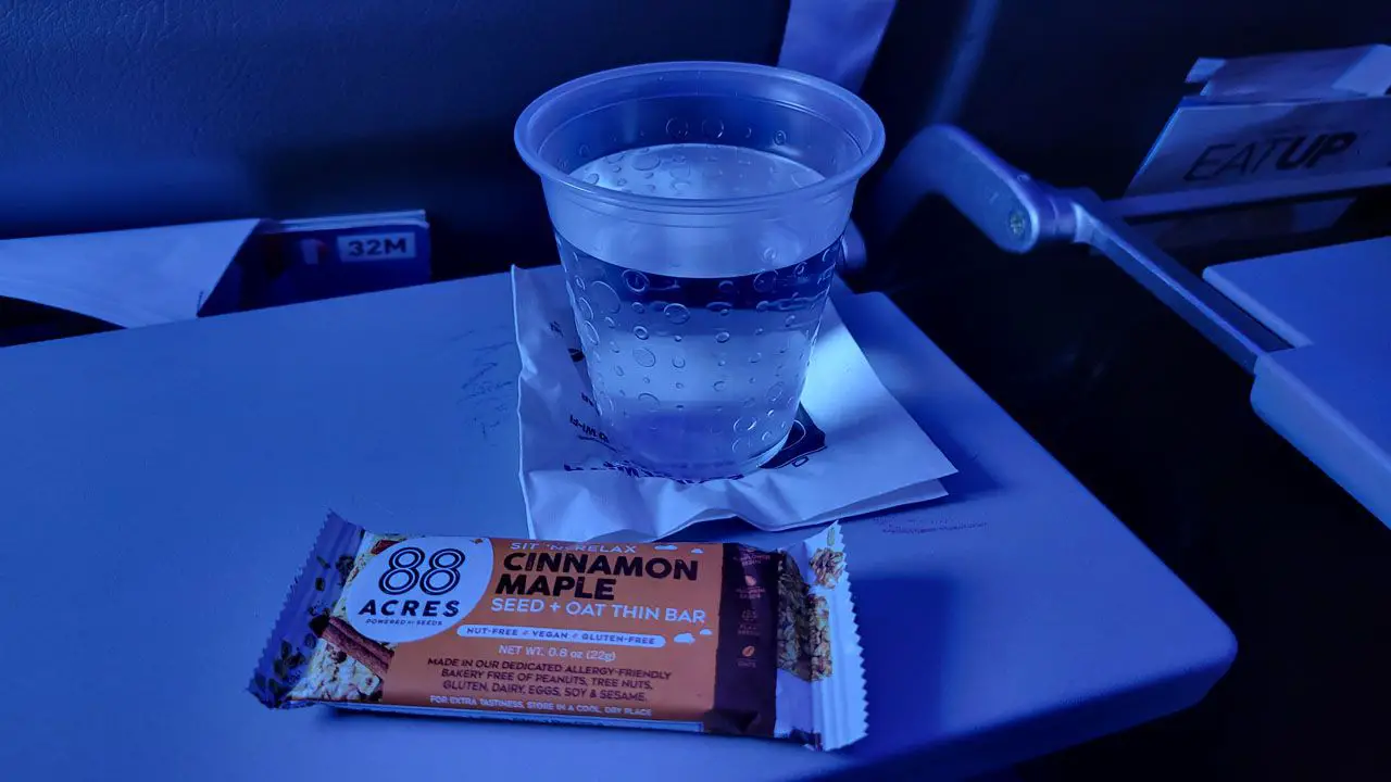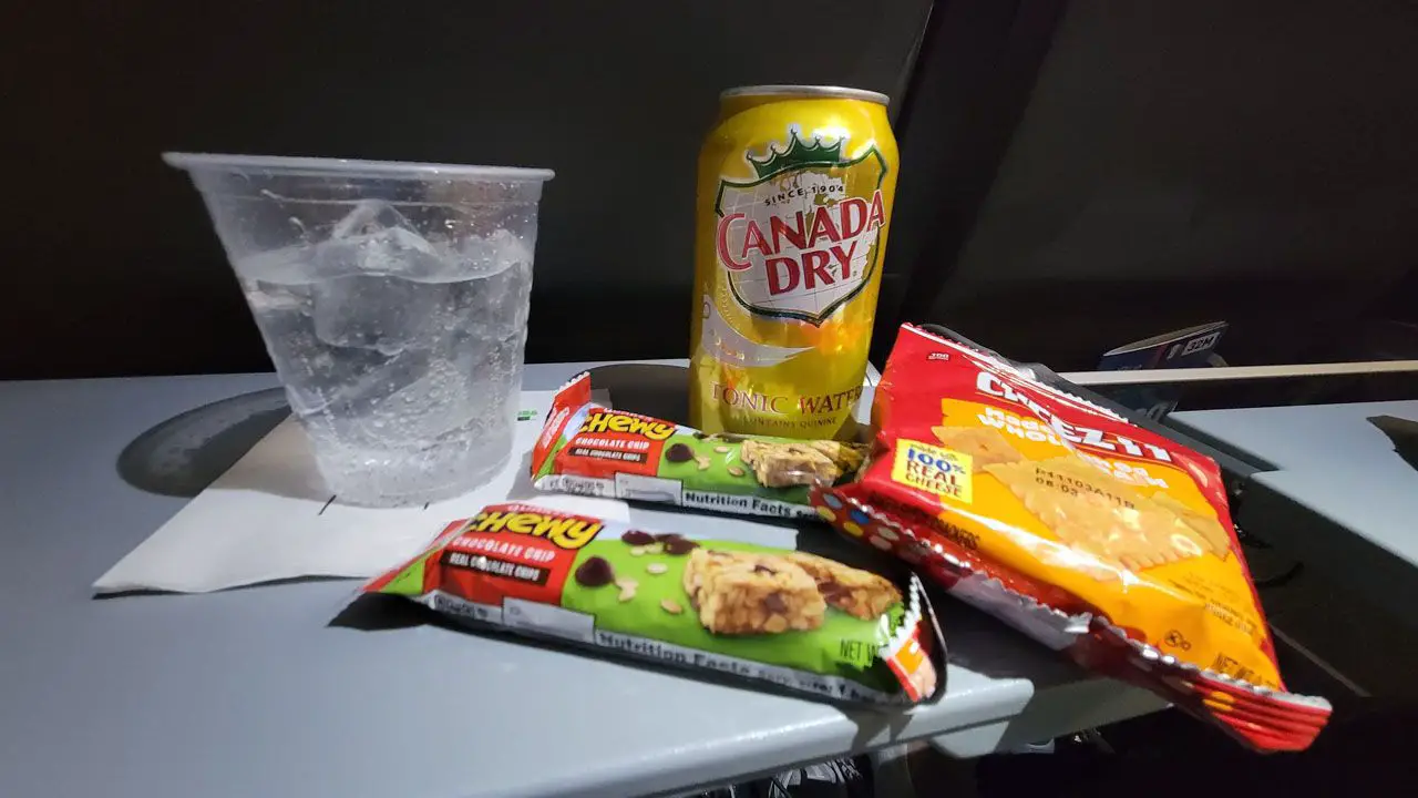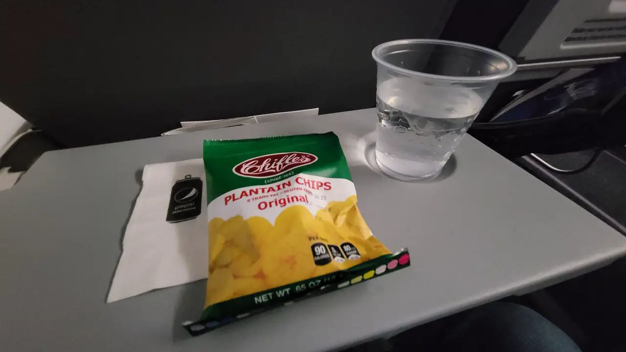JetBlue oferece uma variedade de lanches e bebidas a bordo sem custo adicional em todas as tarifas. As opções variam de cookies, pretzel e até chifles que para minha agradável surpresa, são feitos em Equador, comoí Esse foi um ótimo ponto.. Espagueteén refrigerantes, como refrigerantes, sucos e água são oferecidos.