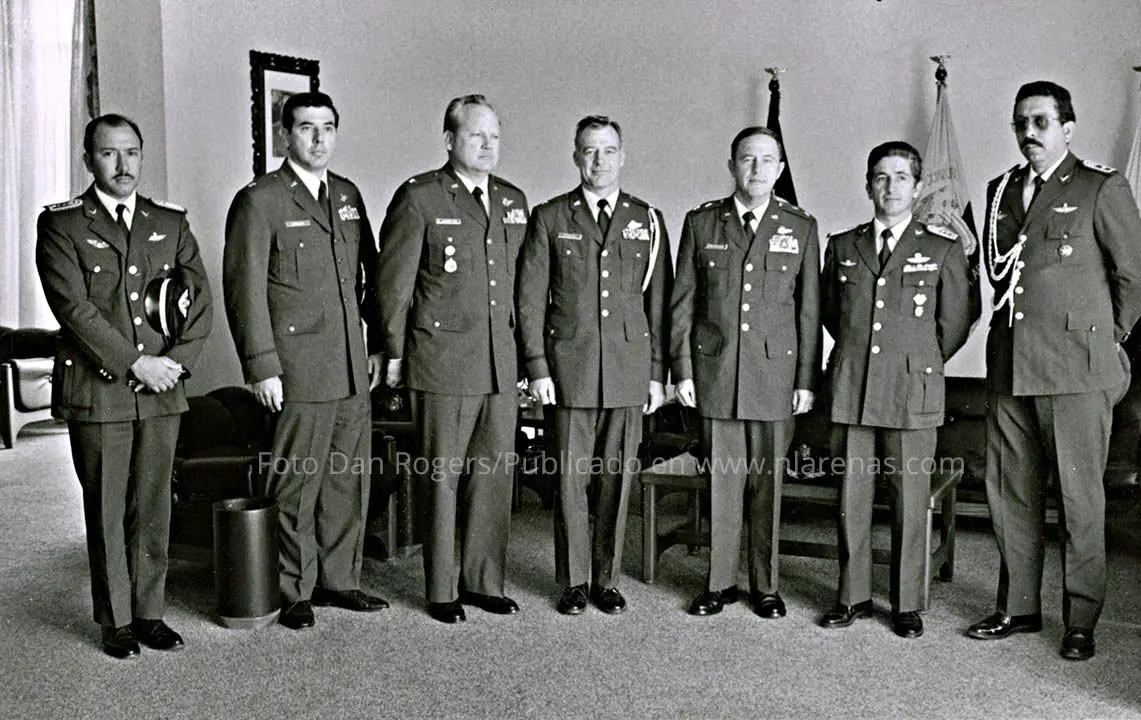 Эта фотография была сделана в Кито, ¿Кто -то знает военнослужащих на фото? Первый справа - генерал Гало Коронель Друэт, Кто умерó В знании знаний о фей в 1988. Спагеттиén Полковник Гало полковник и майор H появляютсяéCTOR EDEDIA.